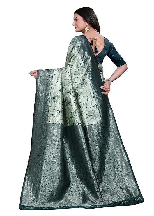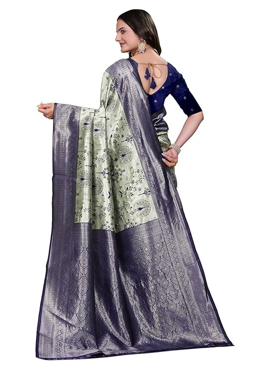 • Border & Pallu: Sky Blue with Heavy Zari Work