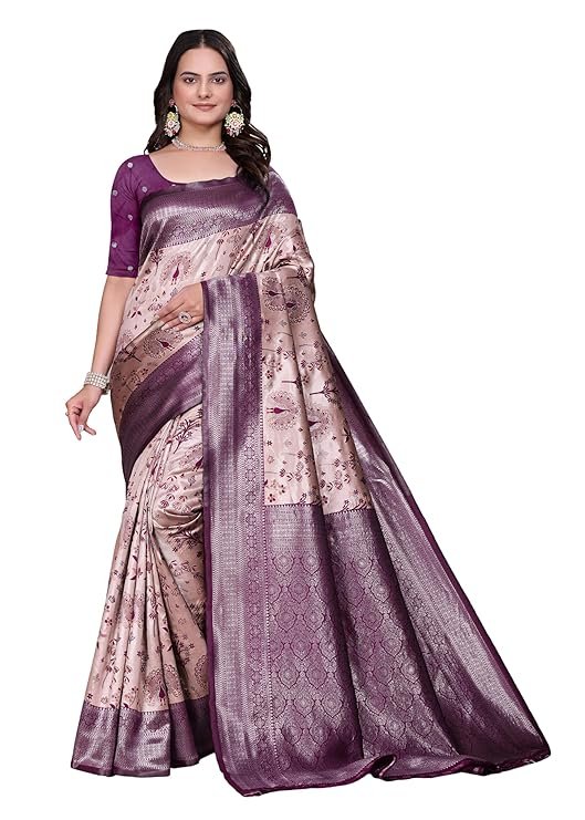 Crafted from premium jacquard silk blend fabric, this saree offers a luxurious sheen, lightweight feel, and comfortable drape, making it ideal for long wear.